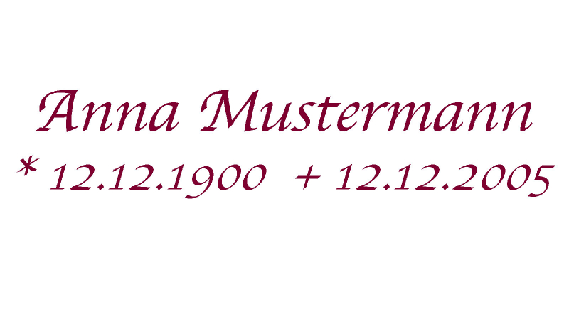 Rote Beschriftungen für Grabkreuze, Schriftart 3 rot