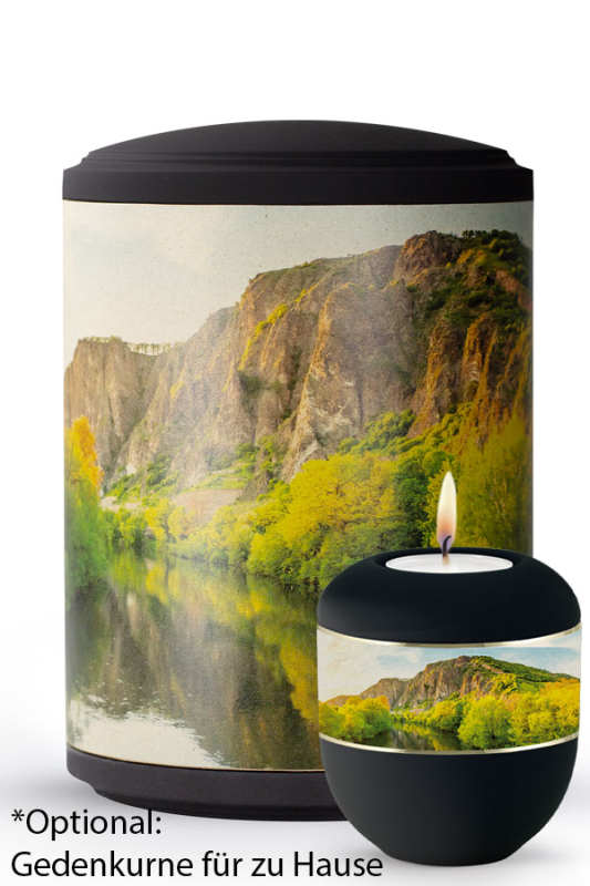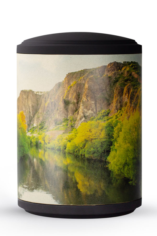 Andenken Urne mit Teelicht P1631L - Motiv Felsenufer auf Pflanzenfasern - Edition Riverlight .