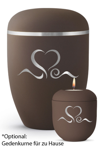 Urne braun matt mit einem dezenten weißgoldenen Streifen und Herz gebürstet. Die braune Bio Urne 2916HZ-WG aus der Urnen Edition Classique wird aus biologisch abbaubaren Komponenten, gem. EN 13432 und EN ISO 846 in herkömmlicher Beisetzungssituation, hergestellt. Schmuckurnen dieser Größe können jede Aschekapsel aufnehmen Weitere Urnen und die passenden Gedenklichter aus der Classique Edition finden Sie unter unseren Empfehlungen.| Höhe: | 27,5 cm |