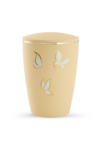 Bio Urne cremefarben 360717 - aus der Urnen Edition Facile Dekor Blätter.
