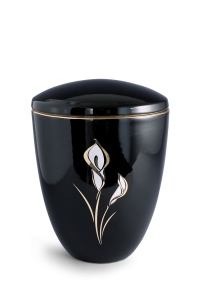 Keramikurne tiefschwarz glänzend Motiv Calla
