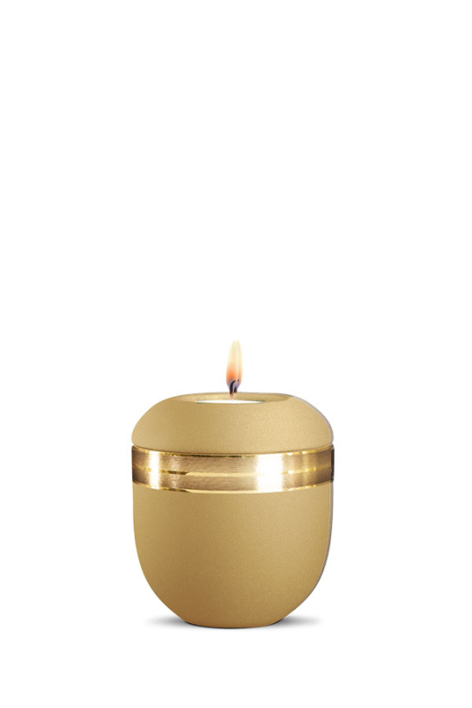 Gedenkurne mit Teelicht Goldocker matt mit einem gebürsteten Goldband. Die Gedenkurne P861401L Goldocker aus der Urnen Edition Infinity Ouro wird aus Porzellan hergestellt. Weitere Gedenkurnen aus der Infinity Edition finden Sie unter unseren Empfehlungen.| Höhe: | 9 cm |