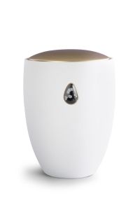 Keramikurne samtiert, verziert mit Kraftstein "Obsidian", Deckel gold