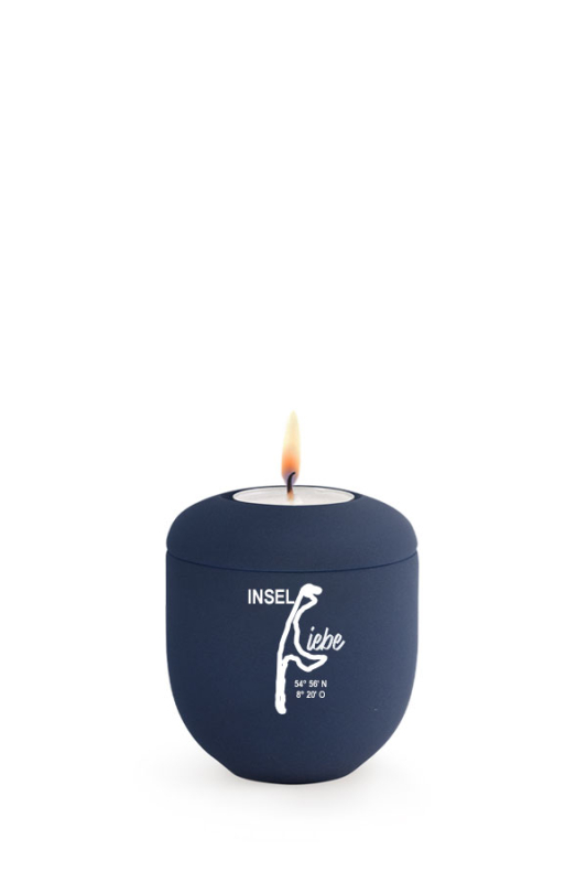 Mini Urne blau P1629L Sylt Voll - Gedenkurne Sylt Edition InselLiebe mit Teelicht.