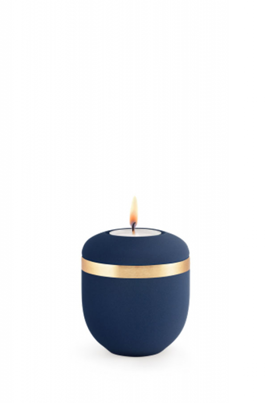 Urne 2029 - Naturstoffurne Samtton Marine blau, Goldrand antikgold
